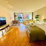 Situovaný ve čtvrti Curych - Sever města Curych, apartmán New Studio With Sunny Terrace & Air Condition je 10 km od letiště Curych Letiste. Jeho součástí je ubytování s výhledem na ulici a Wi-Fi v celé budově.